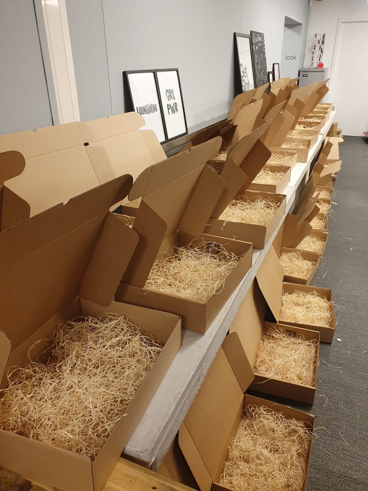 We konden gelijk ook andere lokale ondernemers steunen want natuurlijk kopen we alleen in bij onze ‘buren’. Het was 2 maanden lang dozen en houtwol chaos op kantoor, WE loved it!!!